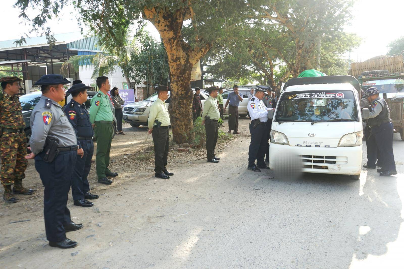ပုံစာ - စစ်ကောင်စီတပ်ဖွဲ့ဝင်များ တံတားဦးမြို့နယ်အတွင်း လမ်းသွားလမ်းလာတွေကို ဖမ်းဆီးနေစဉ်။ (ပုံဟောင်း)